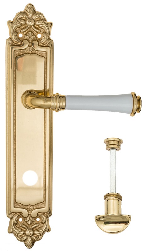 Дверная ручка на планке Fratelli Cattini \"GRACIA CERAMICA BIANCO\" WC-2 PL96-OLV полированная латунь