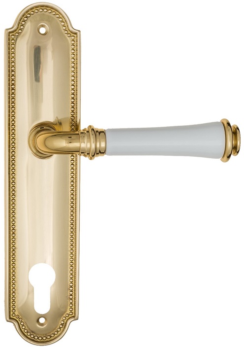 Дверная ручка на планке Fratelli Cattini \"GRACIA CERAMICA BIANCO\" CYL PL248-OLV полированная латунь