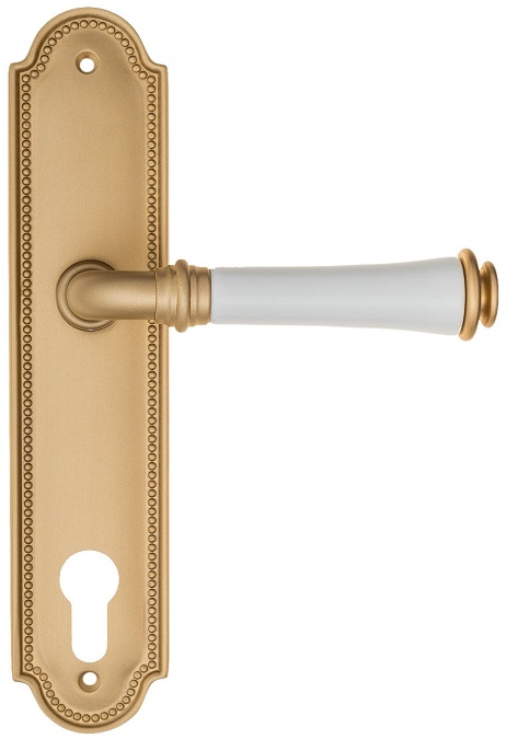 Дверная ручка на планке Fratelli Cattini \"GRACIA CERAMICA BIANCO\" CYL PL248-BS матовая латунь