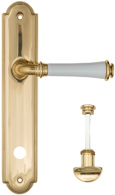 Дверная ручка на планке Fratelli Cattini \"GRACIA CERAMICA BIANCO\" WC-2 PL257-OLV полированная латунь