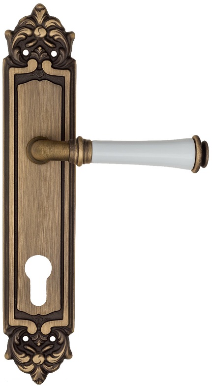 Дверная ручка на планке Fratelli Cattini \"GRACIA CERAMICA BIANCO\" CYL PL96-BY матовая бронза