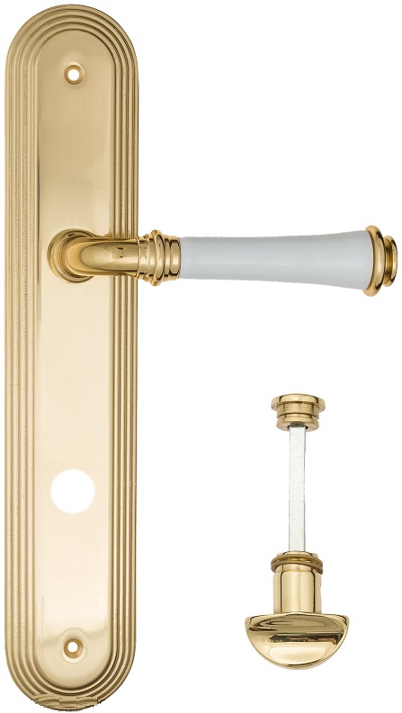 Дверная ручка на планке Fratelli Cattini \"GRACIA CERAMICA BIANCO\" WC-2 PL288-OLV полированная латунь