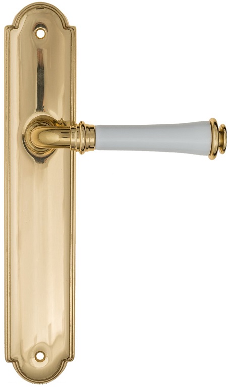 Дверная ручка на планке Fratelli Cattini \"GRACIA CERAMICA BIANCO\" PL257-OLV полированная латунь