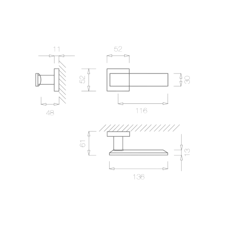 Дверная ручка Tupai на квадратном основании 2730 Q-96 матовый хром