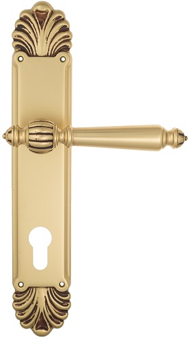 Дверная ручка Venezia \"PELLESTRINA\" CYL на планке PL87 французское золото + коричневый