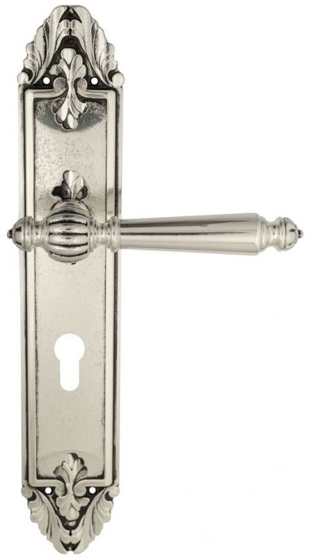 Дверная ручка Venezia \"PELLESTRINA\" CYL на планке PL90 натуральное серебро + черный