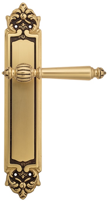 Дверная ручка Venezia \"PELLESTRINA\" на планке PL96 французское золото + коричневый