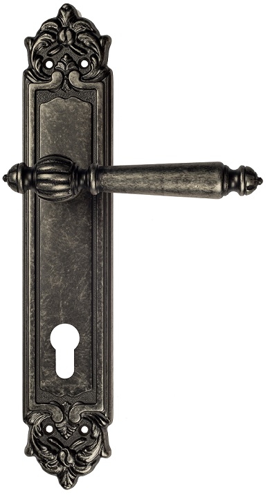 Дверная ручка Venezia \"PELLESTRINA\" CYL на планке PL96 античное серебро
