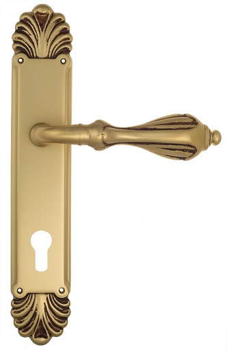 Дверная ручка Venezia \"ANAFESTO\" CYL на планке PL87 французское золото + коричневый