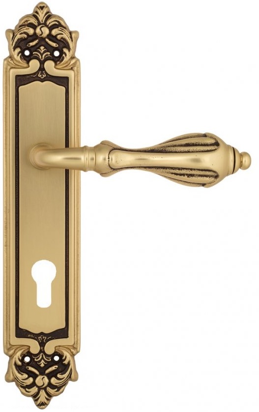 Дверная ручка Venezia \"ANAFESTO\" CYL на планке PL96 французское золото + коричневый