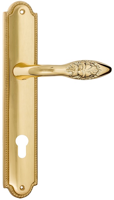 Дверная ручка Venezia \"CASANOVA\" CYL на планке PL98 полированная латунь