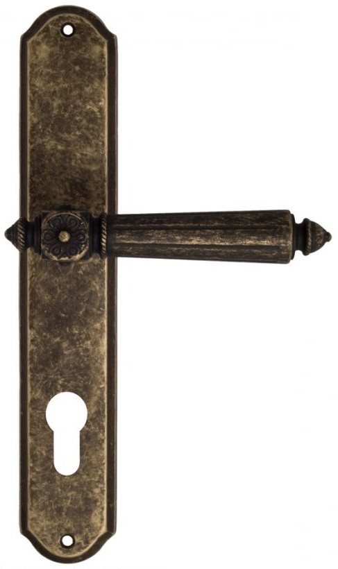 Дверная ручка Venezia \"CASTELLO\" CYL на планке PL02 античная бронза