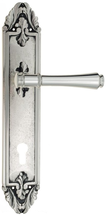 Дверная ручка Venezia \"CALLISTO\" CYL на планке PL90 натуральное серебро + черный