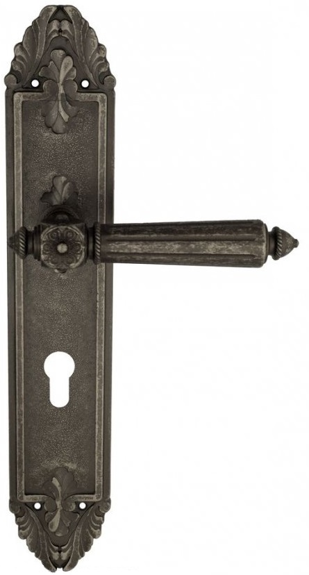 Дверная ручка Venezia \"CASTELLO\" CYL на планке PL90 античное серебро