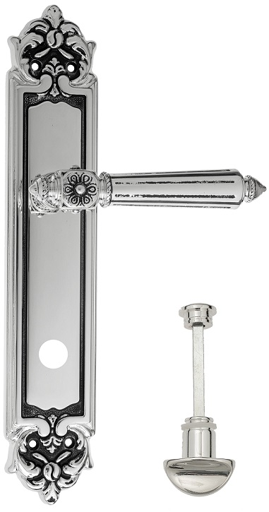 Дверная ручка Venezia \"CASTELLO\" WC-2 на планке PL96 натуральное серебро + черный