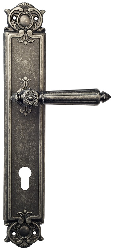 Дверная ручка Venezia \"CASTELLO\" CYL на планке PL97 античное серебро