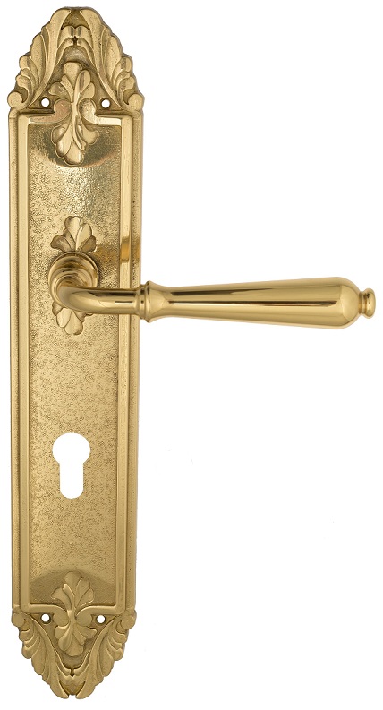 Дверная ручка Venezia \"CLASSIC\" CYL на планке PL90 полированная латунь