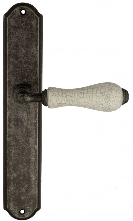 Дверная ручка Venezia \"COLOSSEO\" белая керамика паутинка на планке PL02 античное серебро