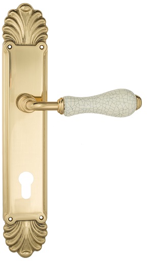 Дверная ручка Venezia \"COLOSSEO\" белая керамика паутинка CYL на планке PL87 полированная латунь