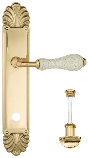 Дверная ручка Venezia \"COLOSSEO\" белая керамика паутинка WC-2 на планке PL87 полированная латунь