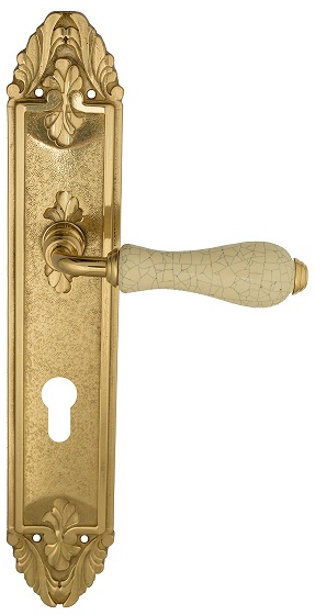Дверная ручка Venezia \"COLOSSEO\" белая керамика паутинка CYL на планке PL90 полированная латунь
