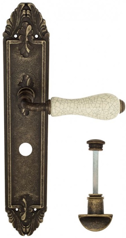 Дверная ручка Venezia \"COLOSSEO\" белая керамика паутинка WC-2 на планке PL90 античная бронза