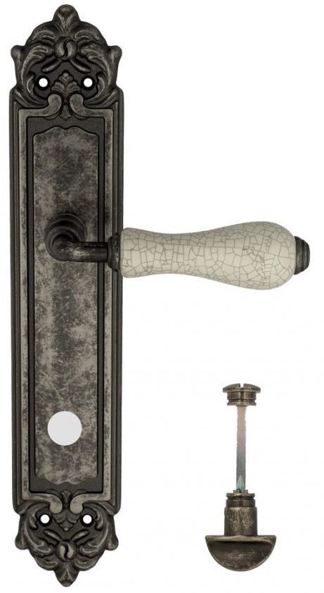Дверная ручка Venezia \"COLOSSEO\" белая керамика паутинка WC-2 на планке PL96 античное серебро