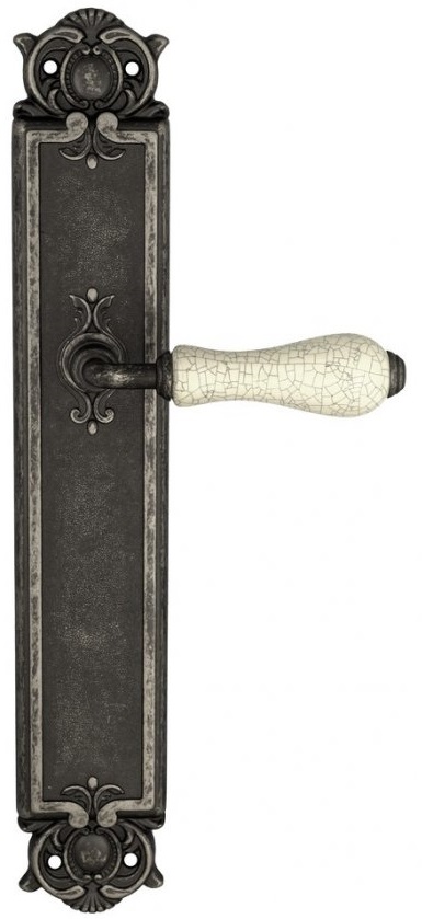 Дверная ручка Venezia \"COLOSSEO\" белая керамика паутинка на планке PL97 античное серебро