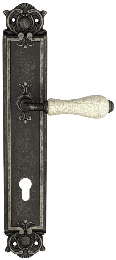 Дверная ручка Venezia \"COLOSSEO\" белая керамика паутинка CYL на планке PL97 античное серебро