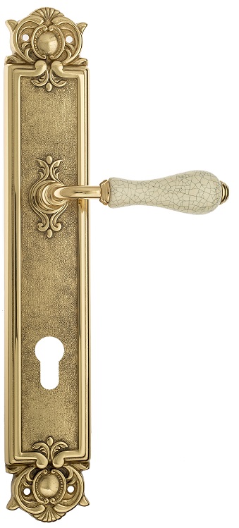 Дверная ручка Venezia \"COLOSSEO\" белая керамика паутинка CYL на планке PL97 полированная латунь