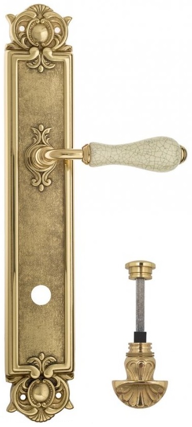 Дверная ручка Venezia \"COLOSSEO\" белая керамика паутинка WC-4 на планке PL97 полированная латунь