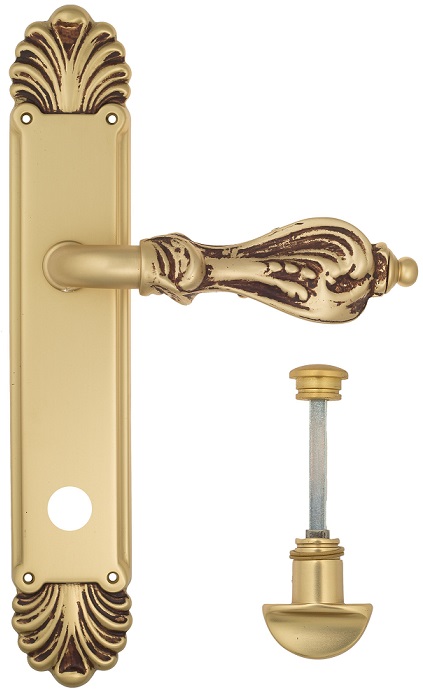 Дверная ручка Venezia \"FLORENCE\" WC-2 на планке PL87 французское золото + коричневый