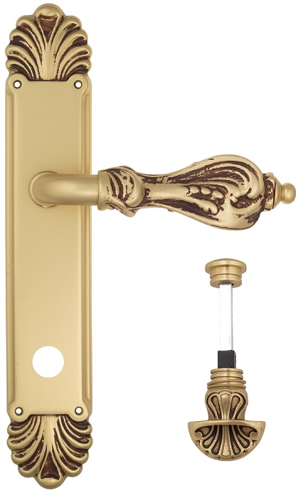 Дверная ручка Venezia \"FLORENCE\" WC-4 на планке PL87 французское золото + коричневый