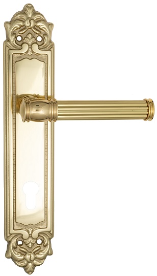 Дверная ручка Venezia \"IMPERO\" CYL на планке PL96 полированная латунь