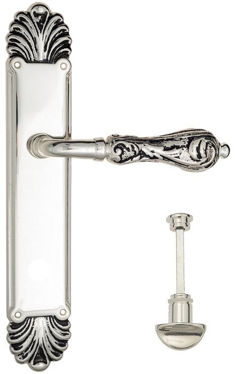 Дверная ручка Venezia \"MONTE CRISTO\" WC-2 на планке PL87 натуральное серебро + черный
