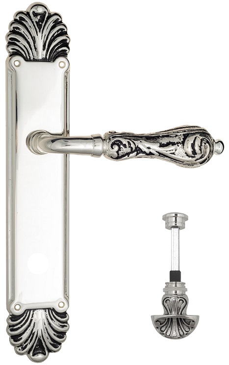 Дверная ручка Venezia \"MONTE CRISTO\" WC-4 на планке PL87 натуральное серебро + черный