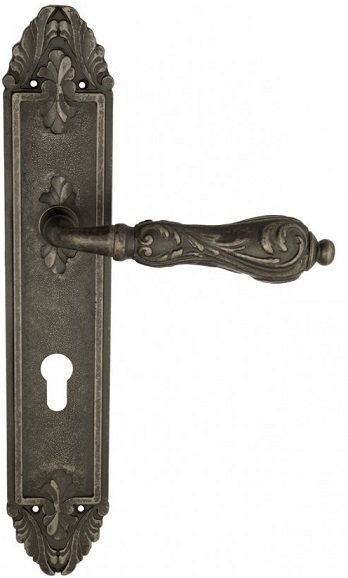 Дверная ручка Venezia \"MONTE CRISTO\" CYL на планке PL90 античное серебро