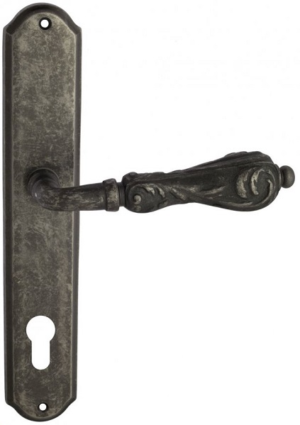 Дверная ручка Venezia \"MONTE CRISTO\" CYL на планке PL02 античное серебро