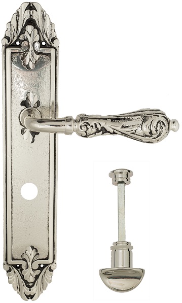 Дверная ручка Venezia \"MONTE CRISTO\" WC-2 на планке PL90 натуральное серебро + черный