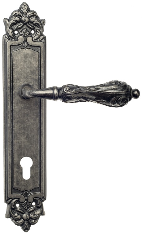 Дверная ручка Venezia \"MONTE CRISTO\" CYL на планке PL96 античное серебро