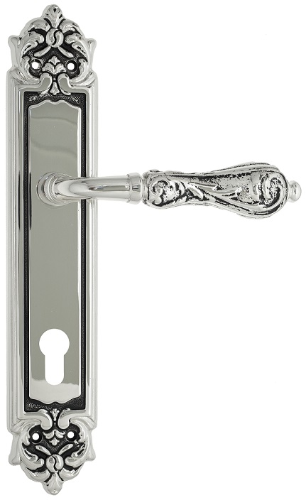 Дверная ручка Venezia \"MONTE CRISTO\" CYL на планке PL96 натуральное серебро + черный