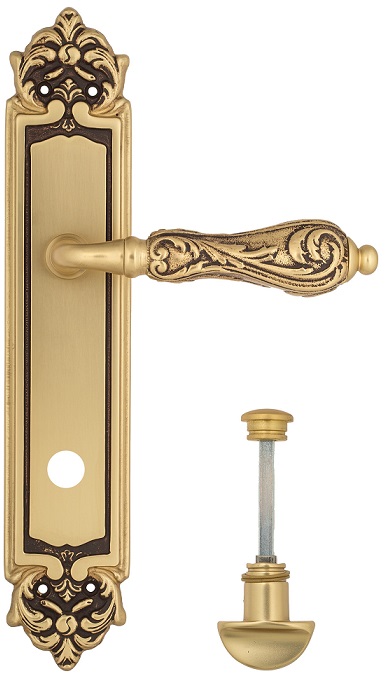 Дверная ручка Venezia \"MONTE CRISTO\" WC-2 на планке PL96 французское золото + коричневый