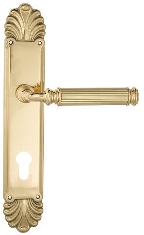 Дверная ручка Venezia \"MOSCA\" CYL на планке PL87 полированная латунь