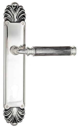 Дверная ручка Venezia \"MOSCA\" CYL на планке PL87 натуральное серебро + черный