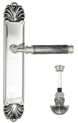 Дверная ручка Venezia \"MOSCA\" WC-4 на планке PL87 натуральное серебро + черный