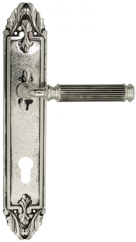 Дверная ручка Venezia \"MOSCA\" CYL на планке PL90 натуральное серебро + черный