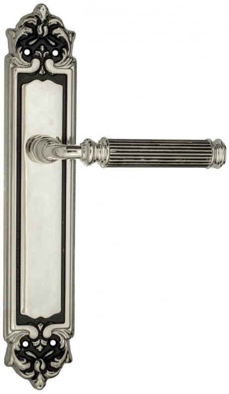 Дверная ручка Venezia \"MOSCA\" на планке PL96 натуральное серебро + черный