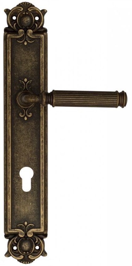 Дверная ручка Venezia \"MOSCA\" CYL на планке PL97 античная бронза