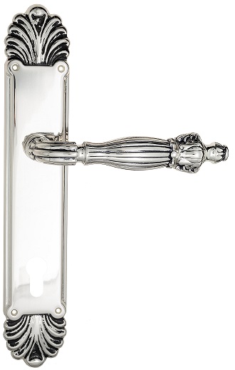 Дверная ручка Venezia \"OLIMPO\" CYL на планке PL87 натуральное серебро + черный