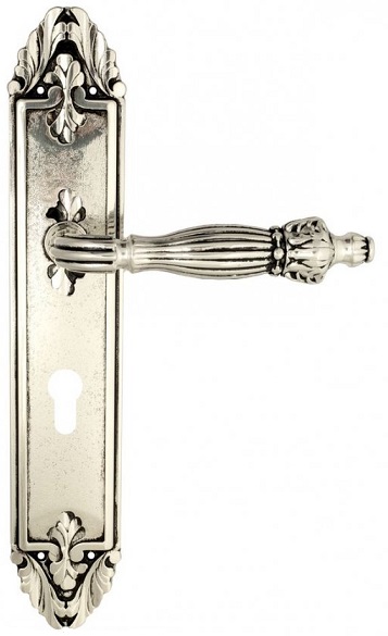 Дверная ручка Venezia \"OLIMPO\" CYL на планке PL90 натуральное серебро + черный